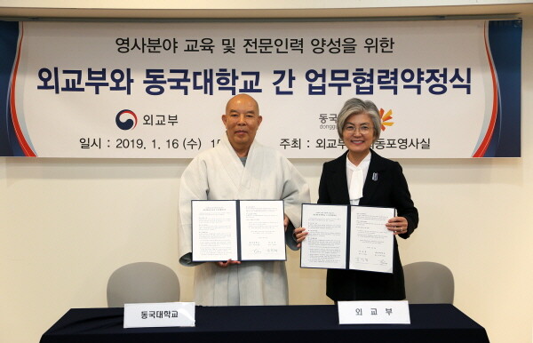 한편 이번 협약식에는 한태식 동국대 총장과 강경화 장관을 비롯해 관계자 20여 명이 참석했다.