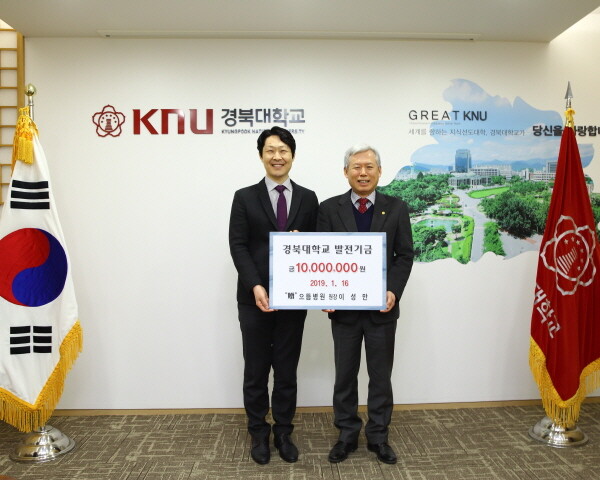 전달된 발전기금은 정형외과학교실기금으로 적립돼 의과대학 정형외과학교실 발전을 위해 사용될 예정이다. 이성만 원장은 2013년과 2015년에도 각 1000만 원의 발전기금을 출연해 이번까지 총 3000만 원의 발전기금을 경북대에 전달했다.