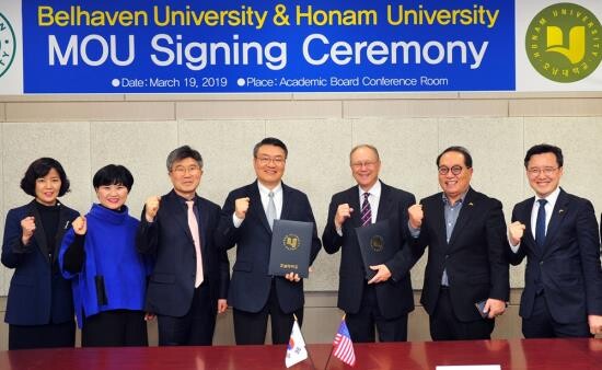 [대학저널 오혜민 기자] 호남대학교(총장 박상철) 국제교류본부(본부장 손완이)는 지난 19일 오후 4시 대학본부 교무위원회의실에서 미국 벨헤이븐대학교(Belhaven University) 클리프 맥카들 부총장 등 방문단과 양교 간 교류 협약을 체결하고 실질적 교류를 논의했다.