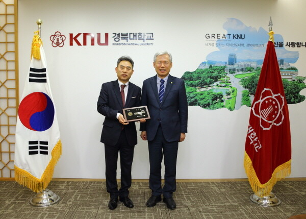 [대학저널 임지연 기자] 경북대학교(총장 김상동)는 21일 총장실에서 대학 발전을 위해 오랜 세월 기부를 이어 온 이대현 도서출판 역락 대표에게 감사의 뜻을 담아 발전기금 감사패를 전달했다.