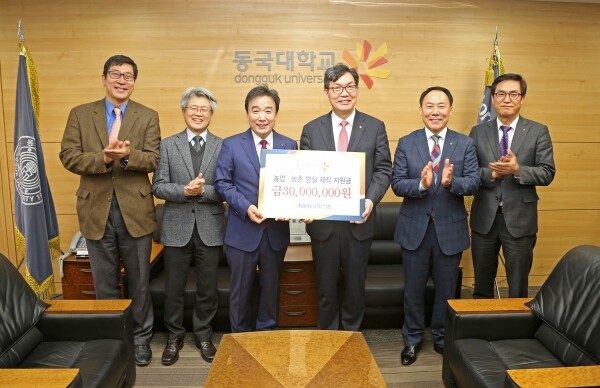 동국대 윤성이 총장과 이대훈 NH농협은행장은 지원금 전달식에서 농업·농촌에 대한 도시민, 젊은 층의 관심 제고 및 인식 개선을 도모하는 영화·영상을 제작하기로 논의했다.