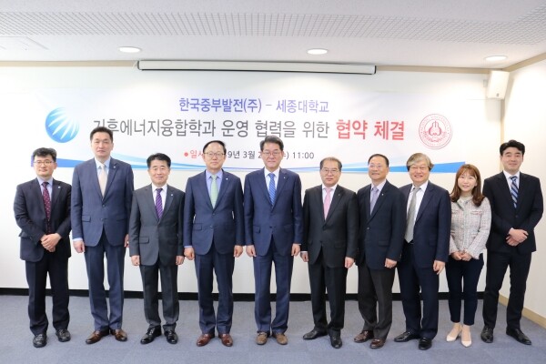 세종대와 한국중부발전(주)는 교육·연구의 산학협력을 통해 국내 전력산업 발전에 기여하고자 기후·환경관련분야를 포함해 발전분야의 우수한 전문 인재를 양성하는 산학교육 체계를 확립할 필요성을 공동으로 인식하고 세종대 대학원 석사·박사과정에 계약학과인 기후에너지융합학과를 설치·운영하기로 했다.