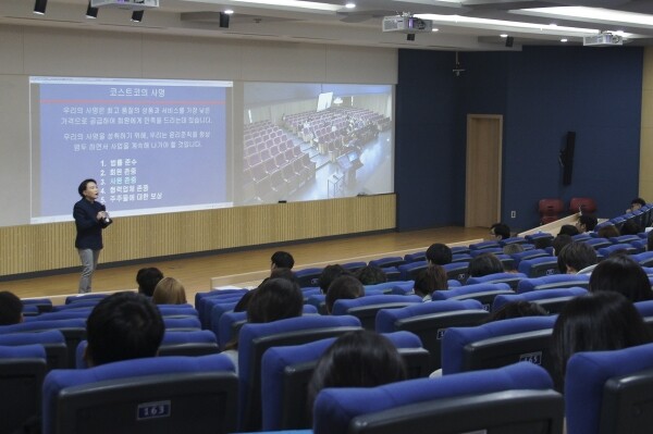 이날 특강은 사회 각 분야의 저명인사들을 초청해 그들의 생각과 경험을 배우기 위해 개설된 ‘성공학 특강’의 하나로 진행됐으며 ‘코스트코의 성공’을 주제로 코스트코의 역사와 현재, 코스트코의 동력과 문화 등에 대해 설명했다. 또 회사가 원하는 인재상에 대한 설명을 통해 코스트코 코리아 및 유통업 분야에 관심이 있는 학생들에게 방향을 제시해 주기도 했다.