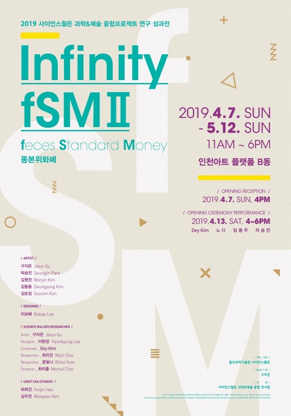 [대학저널 오혜민 기자] UNIST(총장 정무영) 사이언스월든 센터는 인천아트 플랫폼 B동에서 ‘사이언스월든 과학&예술 융합프로젝트 연구 성과전’을 연다. 오는 7일부터 5월 12일까지 진행되는 이번 전시 주제는 ‘무한한 똥본위화폐(Infinity fSM II)’다.