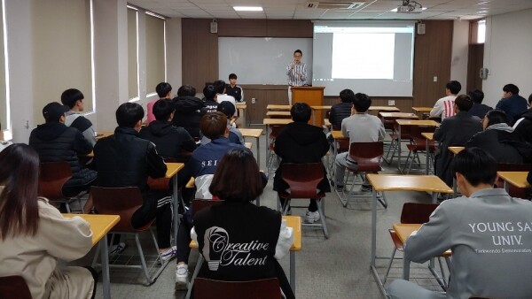 유럽 오스트리아에서 태권도장을 운영하고 있는 와이즈유 졸업생 김민수 씨(03학번)는 지난 15일 양산캠퍼스 태권도학부를 방문해 재학생 약 40명을 대상으로 ‘유럽 태권도장 성공 운영 노하우’를 주제로 졸업생 초청 특강을 진행했다.