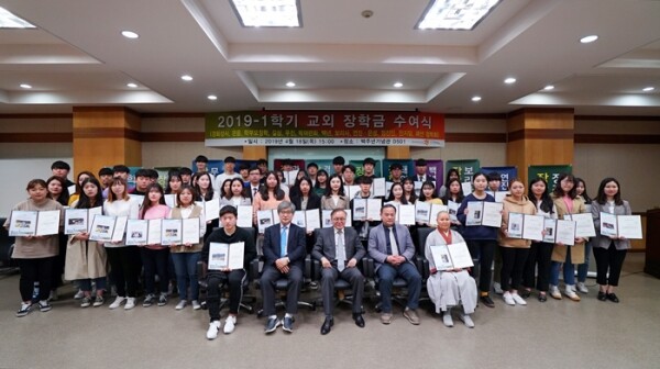 [대학저널 최창식 기자] 동국대학교 경주캠퍼스는 지난 18일 교내 백주년기념관에서 선도장학회 등 총 15개 장학회 장학금 수여식을 가졌다.