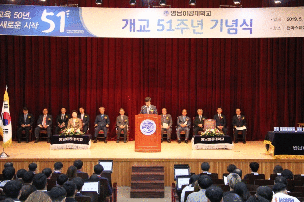 [대학저널 신영경 기자] 영남이공대학교(총장 박재훈)는 10일 영남이공대 천마스퀘어 시청각실에서 개교 제51주년 기념식을 개최했다.