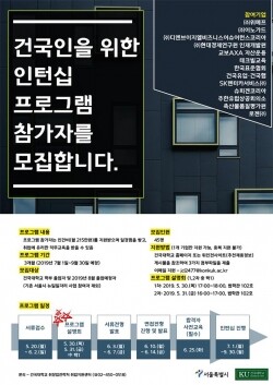 건국대는 최근 서울시의 ‘2019년 대학-강소기업 연계형 뉴딜일자리 사업’에 선정돼 3개월 단기 사업으로 약 3억 1500만 원의 사업비를 지원 받게 됐으며 이번 사업에 참여하는 졸업생은 월 215만 원(세전) 상당의 인건비를 지원받고 대학과 협약을 체결한 기업에서 인턴십을 하게 된다.