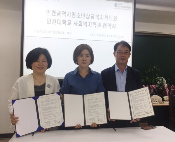 [대학저널 오혜민 기자] 인천대학교(총장 조동성) 정책대학원(원장 한기순)과 사회복지학과(학과장 전용호)는 지난 28일 인천광역시 청소년상담복지센터(소장 김보기)와 업무협약을 체결했다.