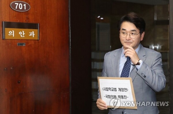 이와 관련해 박 의원은 지난 17일 '사학혁신법'(사립학교법 개정안)을 대표 발의했다. 개정안은 학교법인 설립자나 이사장의 8촌 이내 혈족, 4촌 이내 인척, 배우자 등 친족은 개방 이사로 선임할 수 없도록 하는 내용이 담겨 있다. 또한 현행법은 학교법인 이사의 4분의 1만 개방이사추천위원회가 추천한 이로 선임하면 되지만 개정안은 절반 이상 포함하도록 강화했다. 재단 임원이나 학교장이 회계 부정을 저지르면 처벌하는 조항도 명시돼 있다.