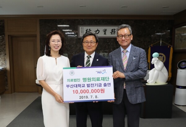 [대학저널 임지연 기자] 의료법인 명원의료재단이 지난 8일 부산대학교(총장 전호환) 본관 5층 총장실에서 부산대 발전 지원을 위해 1000만 원의 발전기금을 출연했다.