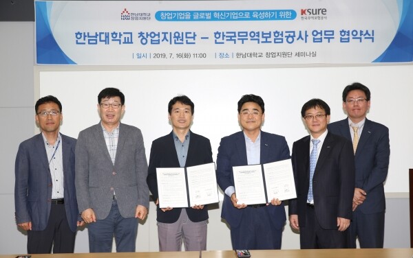 이날 협약을 통해 한남대 2012년~2018년 창업선도대학 육성사업 졸업기업 및 2019 초기창업패키지 선정기업이 해외시장 개척을 하고자 할 때 한국무역보험공사가 공동지원 노력을 기울이게 된다.