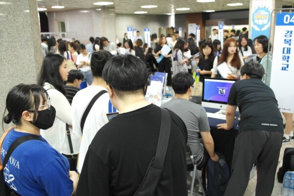 [대학저널 임지연 기자] 한국전문대학교육협의회가 주최하는 ‘2020학년도 수도권 전문대학 입학정보 박람회’가 19일 유한대 유일한기념관에서 열렸다. 오는 20일까지 계속된다. 이번 박람회에는 수도권 소재 43개 전문대학이 참여한다. 개막 첫날인 19일에는 수많은 수험생과 학부모들이 행사장에 몰려 현장 열기를 뜨겁게 달궜다. 사진은 경복대학교 부스 상담 모습.