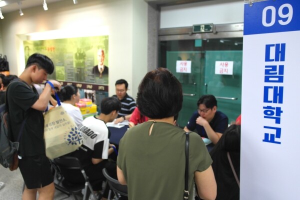 [대학저널 임지연 기자] 한국전문대학교육협의회가 주최하는 ‘2020학년도 수도권 전문대학 입학정보 박람회’가 19일 유한대 유일한기념관에서 열렸다. 오는 20일까지 계속된다. 이번 박람회에는 수도권 소재 43개 전문대학이 참여한다. 개막 첫날인 19일에는 수많은 수험생과 학부모들이 행사장에 몰려 현장 열기를 뜨겁게 달궜다. 사진은 대림대학교 부스 상담 모습.