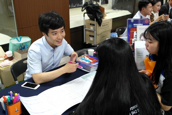 [대학저널 임지연 기자] 한국전문대학교육협의회가 주최하는 ‘2020학년도 수도권 전문대학 입학정보 박람회’가 19일 유한대 유일한기념관에서 열렸다. 오는 20일까지 계속된다. 이번 박람회에는 수도권 소재 43개 전문대학이 참여한다. 개막 첫날인 19일에는 수많은 수험생과 학부모들이 행사장에 몰려 현장 열기를 뜨겁게 달궜다. 사진은 용인송담대학교 부스 상담 모습.
