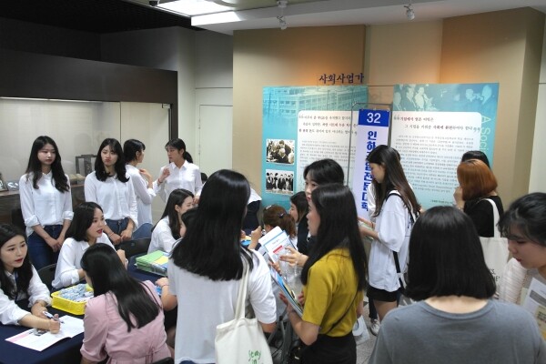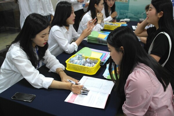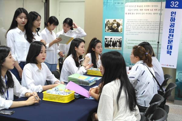 [대학저널 임지연 기자] 한국전문대학교육협의회가 주최하는 ‘2020학년도 수도권 전문대학 입학정보 박람회’가 19일 유한대 유일한기념관에서 열렸다. 오는 20일까지 계속된다. 이번 박람회에는 수도권 소재 43개 전문대학이 참여한다. 개막 첫날인 19일에는 수많은 수험생과 학부모들이 행사장에 몰려 현장 열기를 뜨겁게 달궜다. 사진은 인하공업전문대학 부스 상담 모습.