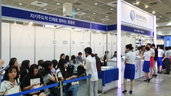 [대학저널 신영경 기자] 한국대학교육협의회가 주최하는 '2020학년도 수시 대학입학정보박람회'(이하 수시박람회)가 25일부터 28일까지 서울 삼성동 코엑스 1층 A홀에서 열린다. 이번 수시박람회에는 서울대와 연세대 등 전국 151개 대학이 참가한다. 현재 수험생과 학부모들이 발 디딜 틈 없이 몰리는 등 현장 열기가 뜨겁다. 사진은 성신여자대학교 상담부스 모습.