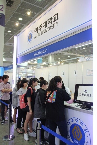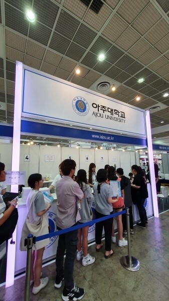 [대학저널 신영경 기자] 한국대학교육협의회가 주최하는 '2020학년도 수시 대학입학정보박람회'(이하 수시박람회)가 25일부터 28일까지 서울 삼성동 코엑스 1층 A홀에서 열린다. 이번 수시박람회에는 서울대와 연세대 등 전국 151개 대학이 참가한다. 현재 수험생과 학부모들이 발 디딜 틈 없이 몰리는 등 현장 열기가 뜨겁다. 사진은 아주대학교 상담부스 모습.