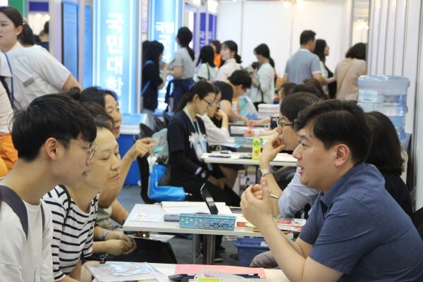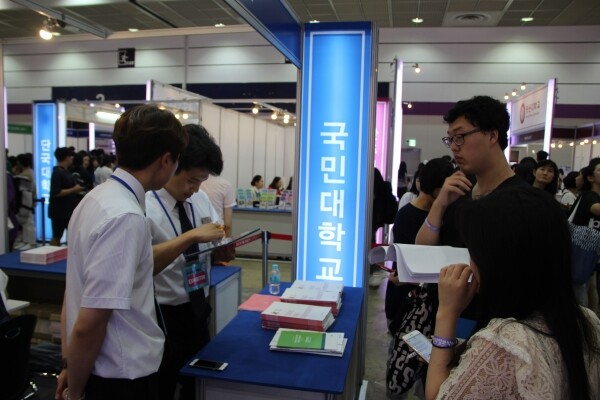 [대학저널 신영경 기자] 한국대학교육협의회가 주최하는 '2020학년도 수시 대학입학정보박람회'(이하 수시박람회)가 25일부터 28일까지 서울 삼성동 코엑스 1층 A홀에서 열린다. 이번 수시박람회에는 서울대와 연세대 등 전국 151개 대학이 참가한다. 현재 수험생과 학부모들이 발 디딜 틈 없이 몰리는 등 현장 열기가 뜨겁다. 사진은 국민대학교 상담부스 모습.