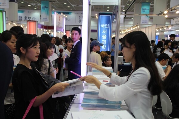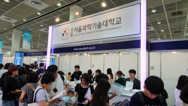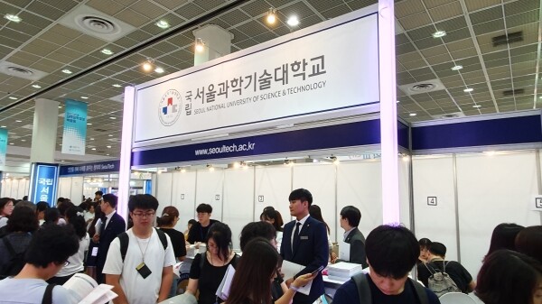 [대학저널 신영경 기자] 한국대학교육협의회가 주최하는 '2020학년도 수시 대학입학정보박람회'(이하 수시박람회)가 25일부터 28일까지 서울 삼성동 코엑스 1층 A홀에서 열린다. 이번 수시박람회에는 서울대와 연세대 등 전국 151개 대학이 참가한다. 현재 수험생과 학부모들이 발 디딜 틈 없이 몰리는 등 현장 열기가 뜨겁다. 사진은 서울과학기술대학교 상담부스 모습.