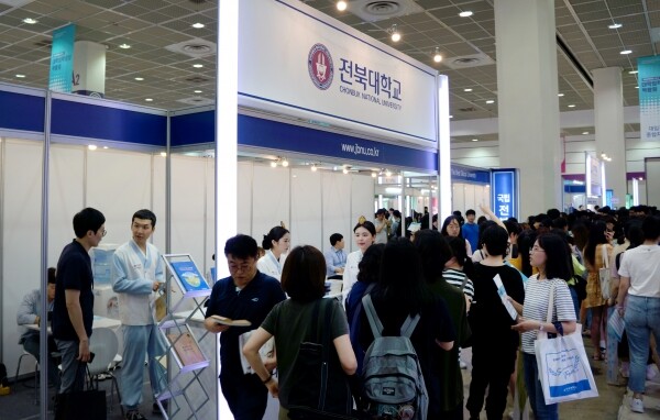 [대학저널 백두산 기자] 한국대학교육협의회가 주최하는 '2020학년도 수시 대학입학정보박람회'(이하 수시박람회)가 25일부터 28일까지 서울 삼성동 코엑스 1층 A홀에서 열린다. 이번 수시박람회에는 서울대와 연세대 등 전국 151개 대학이 참가한다. 현재 수험생과 학부모들이 발 디딜 틈 없이 몰리는 등 현장 열기가 뜨겁다. 사진은 전북대학교 상담부스 모습.