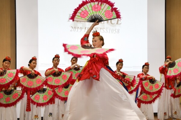 환송사에 이어 한국전통무용인 부채춤 수업과 K-POP 수업을 수강한 외국학생들이 축하공연을 선보였다.
