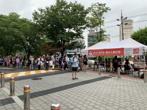 또한 이 날 경기 시구자인 이진영 선수 딸 이채슬 양도 페이스페인팅에 참가해 눈길을 끌었다.
