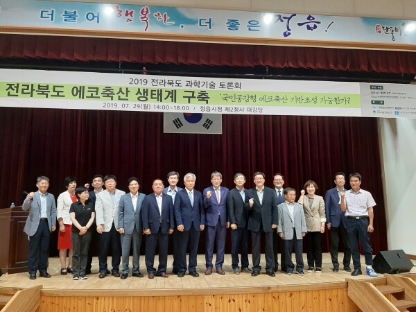'국민소통형 에코축산 기반조성이 가능한가'라는 주제로 열린 이날 토론회에서 전북대 허재영 교수는 농진청 차세대바이오그린21사업과 정읍시 지원을 받아 수행한 ‘에코축산’ 1차 시범사업이 성공해 지속 가능한 축산 환경을 구축했다.