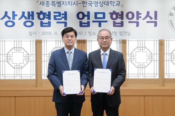 한국영상대는 5일 세종특별자치시청 접견실에서 유재원 총장과 이춘희 세종특별자치시장 등 양 기관 관계자 10여 명이 참석한 가운데 상생협력 업무협약을 체결했다.