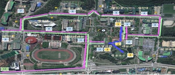군산대가 새롭게 개발한 투어코스는 모두 3개. 30분 정도 소요되는 제 1코스는 대학본부-박물관-황룡도서관-황룡호수를 잇는 도보코스다.