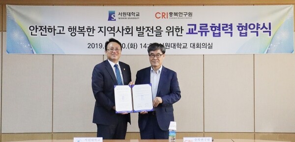 [대학저널 이승환 기자] 서원대학교(총장 손석민)는 20일 행정관 대회의실에서 충북연구원(원장 정초시)과 지역사회 안전과 복지 증진을 위한 업무협약을 체결했다.