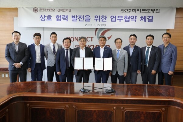[대학저널 이승환 기자] 한국교통대학교(총장 박준훈) 산학협력단은 22일 대학본부 7층 u-Edu Center에서 마이크로병원과 ‘보건 분야 교육 및 전문 인력 교류’를 위한 업무협약을 체결했다.