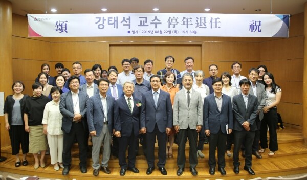 육근열 총장은 “강태석 교수님의 힘찬 발걸음처럼 지난 30년의 재직기간 동안 대학의 주요 보직을 역임하시며 한결같은 성실함으로 후배들에게 귀감이 돼 주신 것에 대하여 감사하다는 말씀을 전한다"며 "오늘 정년퇴임식을 맞아 새로 시작하는 제2의 인생을 통해 가정의 행복과 건강을 기원한다”고 말했다.