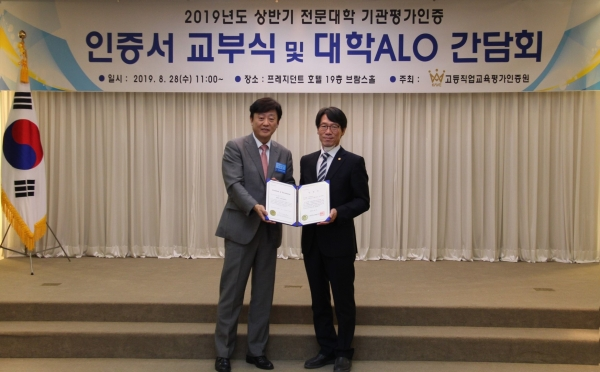 [대학저널 임지연 기자] 서일대학교(총장 우제창)는 지난 28일 한국전문대학교육협의회 부설 고등직업교육평가인증원(원장 이호웅)에서 시행한 ‘2019년도 상반기 전문대학 기관평가인증 심사’에서 ‘인증’ 판정을 받았다.