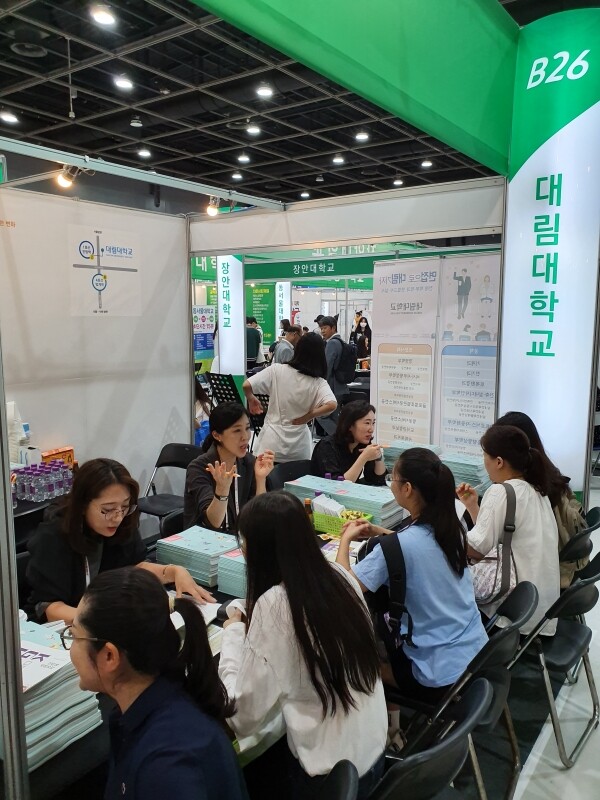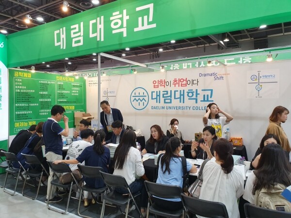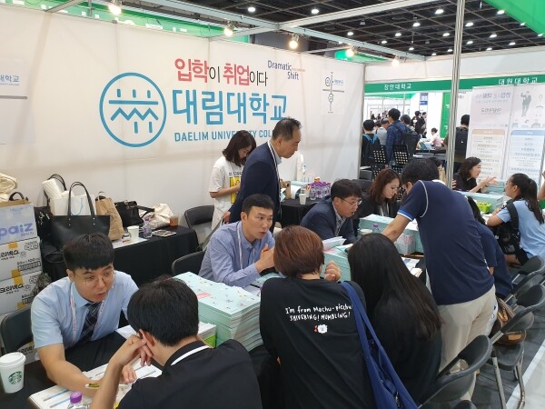 [대학저널 이승환 기자] 한국전문대학교육협의회가 주최하는 '2020학년도 수시 전문대학 입학정보 박람회'(이하 전문대 수시박람회)가 6일부터 8일까지 서울 서초구 양재 aT센터 제2전시관에서 열린다. 이번 전문대 수시박람회에는 전국 91개 전문대학이 참가한다. 현재 수험생과 학부모들이 발 디딜 틈 없이 몰리는 등 현장 열기가 뜨겁다. 사진은 대림대 상담부스 모습.