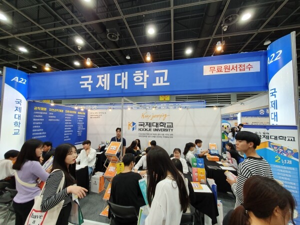 [대학저널 이승환 기자] 한국전문대학교육협의회가 주최하는 '2020학년도 수시 전문대학 입학정보 박람회'(이하 전문대 수시박람회)가 6일부터 8일까지 서울 서초구 양재 aT센터 제2전시관에서 열린다. 이번 전문대 수시박람회에는 전국 91개 전문대학이 참가한다. 현재 수험생과 학부모들이 발 디딜 틈 없이 몰리는 등 현장 열기가 뜨겁다. 사진은 국제대 상담부스 모습.
