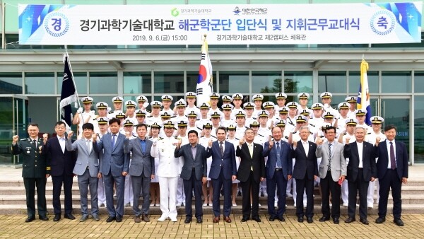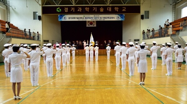 [대학저널 신효송 기자] 경기과학기술대학교(총장 김덕현, 이하 경기과기대)가 9월 6일 교내 체육관에서 해군 부사관학군단(RNTC) 제5기 입단식 및 지휘근무교대식을 개최했다.
