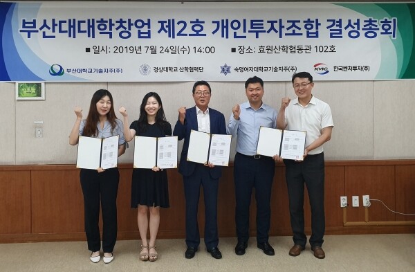 지난 4월 ‘2019년 대학창업펀드’에 선정된 부산대기술지주㈜는 올해 42억 원 규모의 대학창업펀드 운용을 위한 ‘부산대대학창업제2호 개인투자조합’을 결성했다. 7월 24일 부산대 효원산학협동관 102호에서 조합 결성총회를 가졌으며, 최근 5일 중소벤처기업부에 등록을 완료했다.