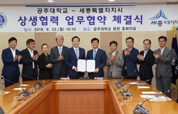 [대학저널 이승환 기자] 공주대학교(총장 원성수)는 23일 대학본부 중회의실에서 세종특별자치시(시장 이춘희)와 지역사회의 공동발전을 도모하기 위한 상생협력 업무 협약을 체결했다.