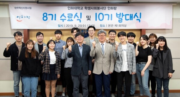 학생사회봉사단 인하랑은 앞서 지난 25일 인하대 본관 1회의실에서 8기 수료식과 10기 발대식을 갖고 활동 결과를 점검하는 한편, 헌혈캠페인과 김장·연탄나눔, 교내 인식개선 캠페인 등 앞으로 활동 계획을 발표했다.