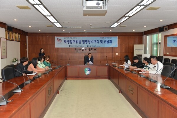 [대학저널 임지연 기자] 대구한의대학교(총장 변창훈)는 지난 25일 대학본관 대회의실에서 대학혁신지원사업의 일환으로 ‘스스로 자신의 진로를 개척하는 실천지성 양성’이라는 비전을 실현시키기 위해 학생참여위원회를 구성하고 임명장 수여식을 가졌다.