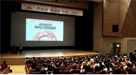 도너츠데이는 취업활성화 및 진로·취업역량 제고를 위한 ▲2019년 채용트렌드 ▲직무역량 중심채용 ▲입사지원 방법 ▲2019년 청년고용지원청책 등의 프로그램으로 구성해 학생들의 진로설계와 취업목표설정 등에 실질적인 도움을 주고자 진행됐다.