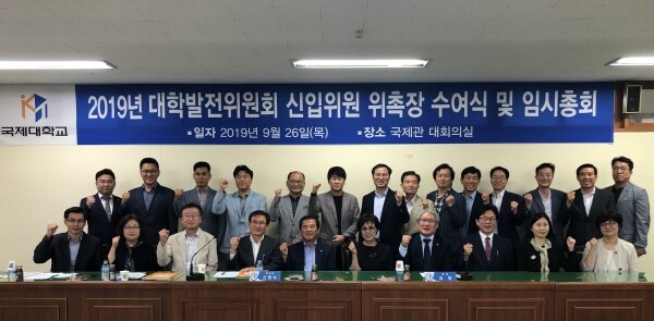 [대학저널 이승환 기자] 국제대학교(총장 김방)는 26일 국제관 대회의실에서 2019년 대학발전위원회 신입위원 위촉장 수여식 및 임시총회를 개최했다.