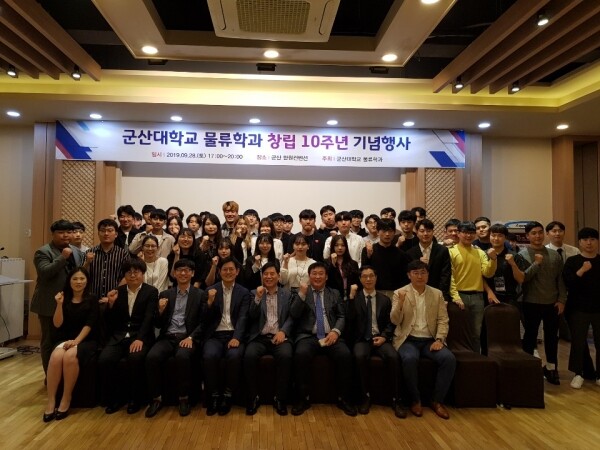 [대학저널 임지연 기자] 군산대학교(총장 곽병선) 물류학과는 지난 28일 군산 한원컨벤션에서 물류학과 창립 10주년 기념행사를 진행했다. 이 행사에는 물류학과 교수진 등 졸업생, 재학생 등 90여 명이 참여했다.