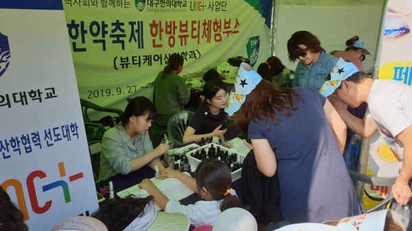 대구한의대는 부속 대구한방병원의 의료 진료와 더불어 학교기업과 참여기업들의 화장품 전시 등을 홍보하며 지속적으로 참여해 왔다.