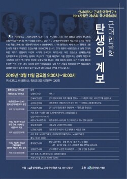 [대학저널 이승환 기자] 연세대학교 미래캠퍼스 근대한국학연구소 인문한국플러스(HK+)사업단(이하 ‘HK+사업단’, 단장 김영민)은 11일 오전 9시부터 오후 8시까지 미래캠퍼스 청파회의실에서 ‘제48회 국내학술대회: 근대한국학 탄생의 계보(이하 ‘국내학술대회’)’를 개최한다.