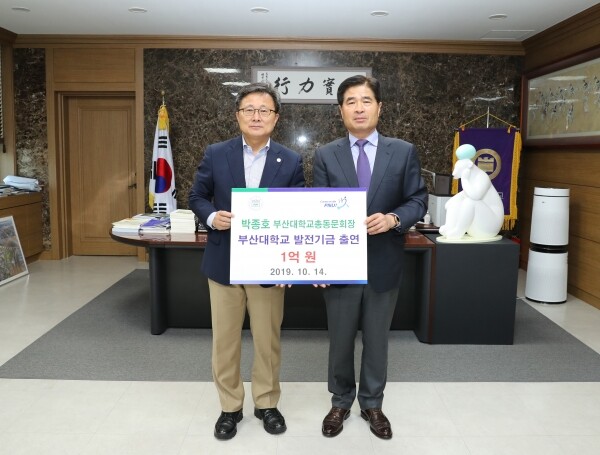 [대학저널 신효송 기자] 부산대학교(총장 전호환) 박종호 총동문회장(센텀의료재단 이사장, 64세)이 지난 14일 부산대를 찾아 발전기금 1억 원을 전달했다.