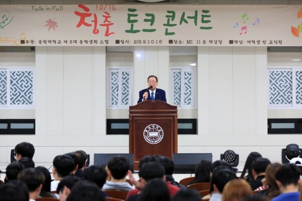 [대학저널 이승환 기자] 중원대학교(총장 김두년)는 10월 문화의 달을 맞아 학생처와 총학생회 공동주관으로 16일 교내 대강당에서 재학생 및 괴산군민 600여명이 참여한 가운데 청춘 토크 콘서트 ‘청춘을 노래하다’를 개최했다.