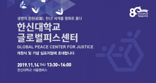 한신대는 14일 정오 ‘글로벌피스센터' 개원식을 갖고 ‘생명의 정원(庭園), 한신! 세계를 평화로 품다’라는 주제 기념심포지엄을 개최한다.