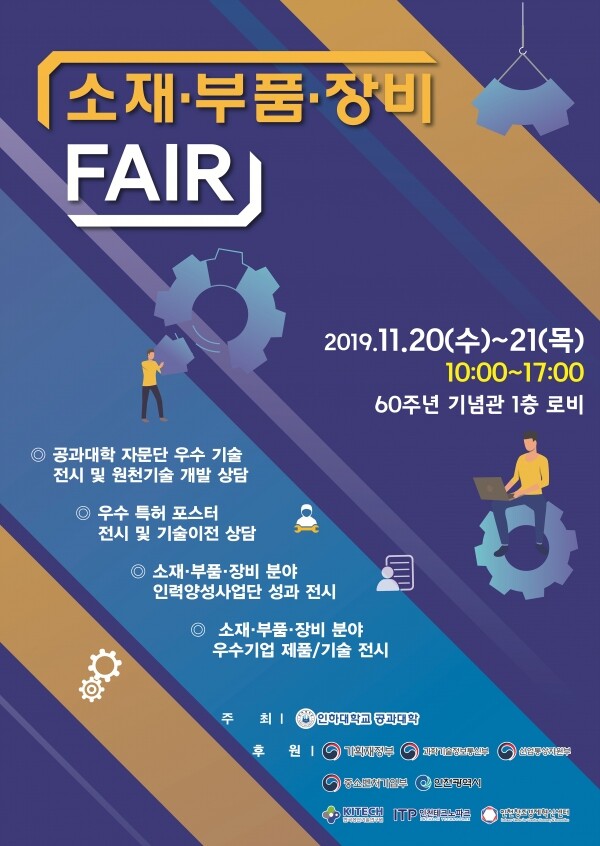 [대학저널 임지연 기자] 인하대학교(총장 조명우)는 오는 20일과 21일 인하대 60주년기념관에서 ‘소재‧부품‧장비 페어’를 개최한다.